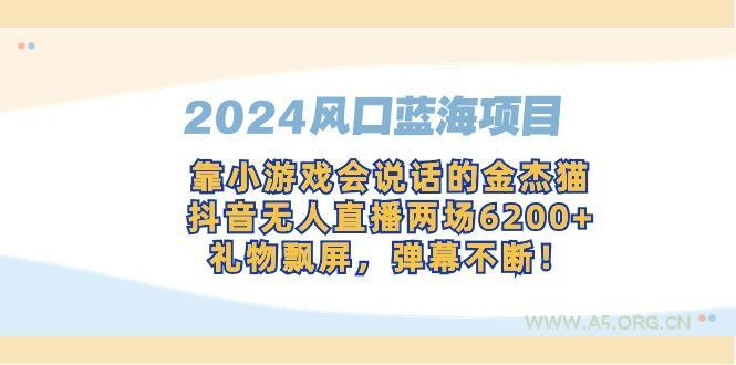 2024风口蓝海项目,靠小游戏会说话的金杰猫,抖音无人直播两场6200+,礼…