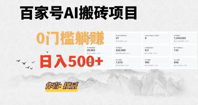 百家号ai无门槛搬砖掘金项目,日入500...
