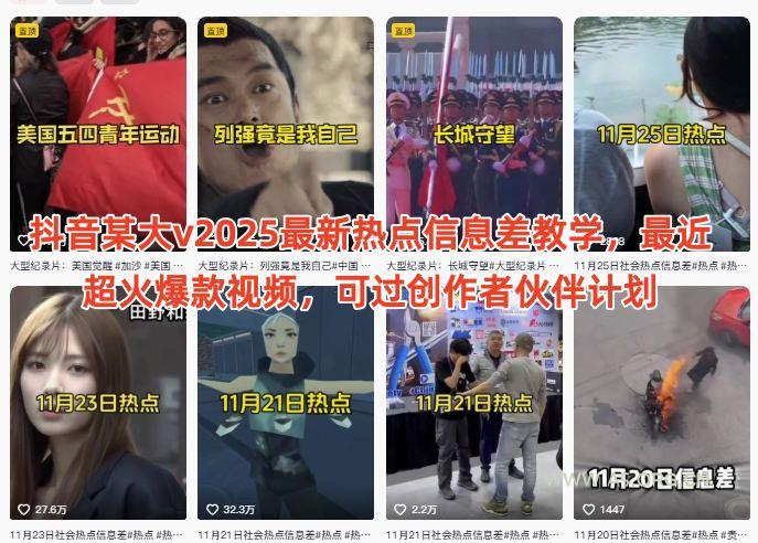 抖音某大v2025最新热点信息差教学,最...