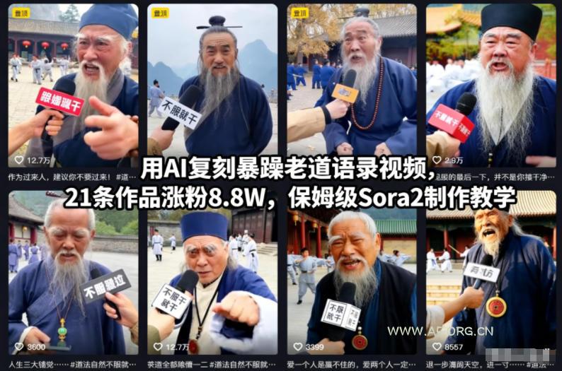 用AI复刻暴躁老道语录视频,21条作品涨...