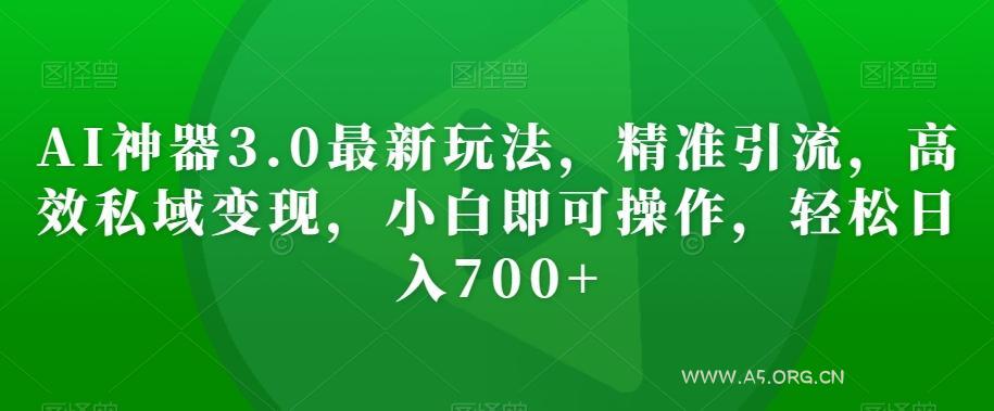 AI神器3.0最新玩法,精准引流,高效私域变现,小白即可操作,轻松日入700+【揭秘】