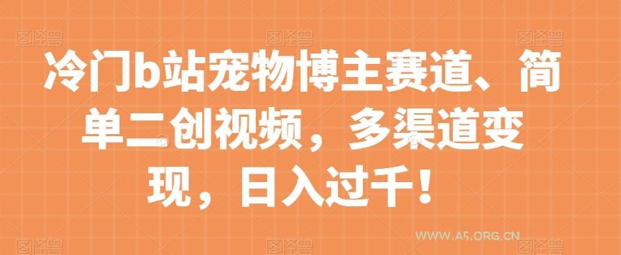 冷门b站宠物博主赛道,简单二创视频,多渠...