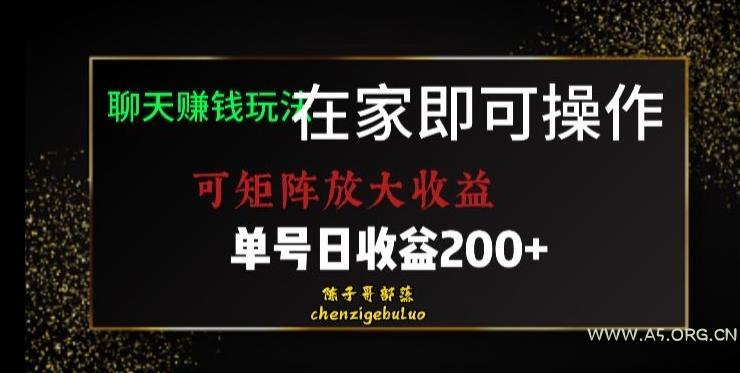 靠聊天赚钱,在家就能做,可矩阵放大收益,...