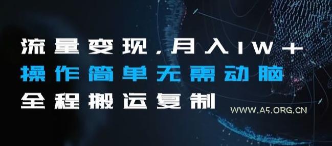 流量变现,月入1W+操作简单无需动脑全程...