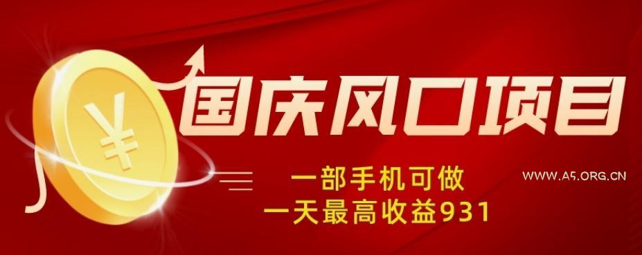 国庆风口项目,1部手机0基础可做,1天最...