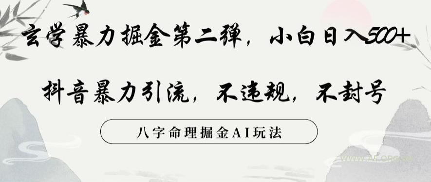 玄学暴力掘金第二弹,小白日入500+,抖...