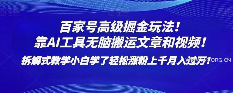 百家号高级掘金玩法!靠AI无脑搬运文章和...
