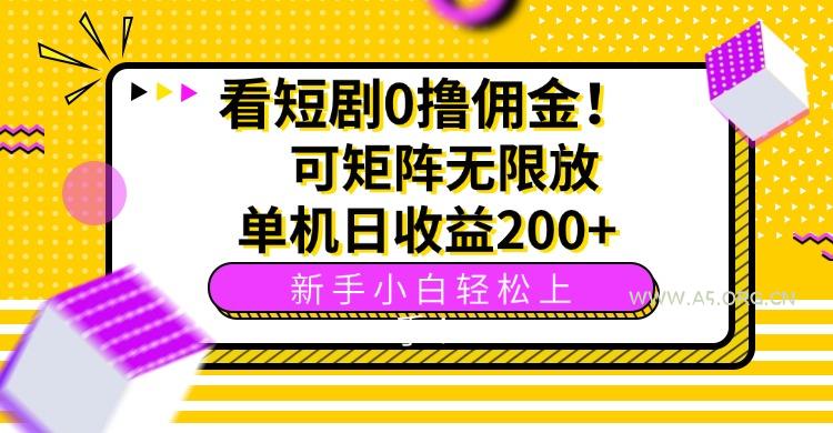 看短剧0撸佣金,可矩阵无限放大,单机日收益200+,新手小白轻松上手!