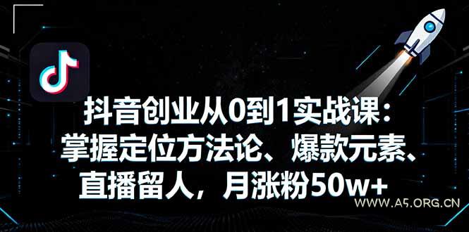 抖音创业从0到1实战课:掌握定位方法论、爆款元素、直播留人,月涨粉50w+
