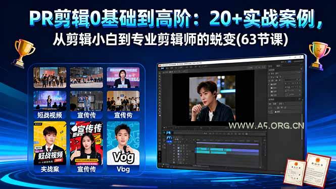 PR剪辑0基础到高阶:20+实战案例,从剪辑小白到专业剪辑师的蜕变(63节课