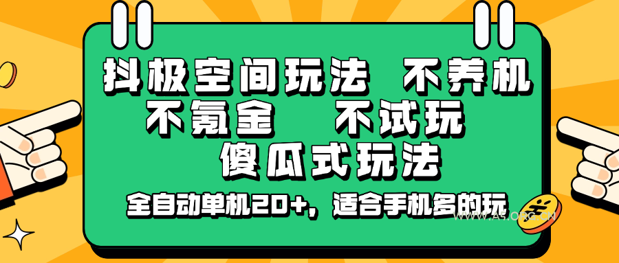 2025-03-14 网赚项目 / 资源教程 抖极空间玩法,不养机,不氪金,不试玩,傻瓜式玩法,全自动单机20+,适合手机多的玩 by 三五一十八 自从去年抖极风控以后,一直没更这个项目,今年新口子来了,新出的这个空间玩法,非常简单无脑,只需要挂机就能产出单机20+的收益,非常无脑简单,适合手机多的人,批量搞,必须用华为手机才行 课程下载: [hidecontent type=”logged” desc=”隐藏内容:登录后可查看”] https://pan.baidu.com/s/1OhvwbS0JDfJfWi5UJ1HcZQ?pwd=b6ib [/hidecontent]