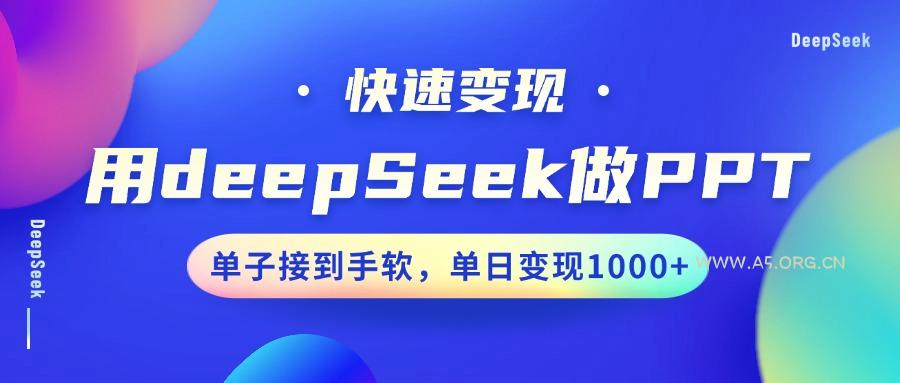 2025-02-24 网赚项目 / 资源教程 用DeepSeek做PPT,快速变现,单子接到手软,单日变现1000+ by 三五一十八 从 DeepSeek发布的那一刻起,我就意识到这不仅仅是一个普通的 AI 工具,而是一个有可能改变我们生活方式的革命性产品。今天教大家用DeepSeek做PTT来变现,以前做ppt至少要3个小时以上,现在用这个DeepSeek,一个工具10分钟就可以搞定,快速接单变现。 课程目录: 01项目介绍 02项目准备 03项目实操 04变现方式