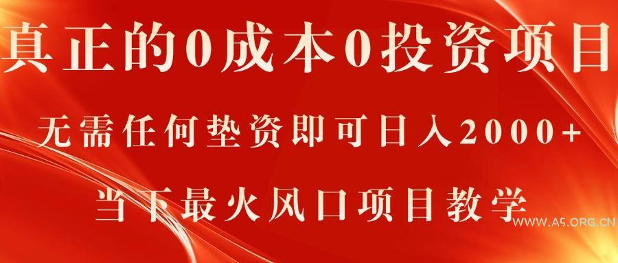 真正的0成本0投资项目,无需任何垫资即可日入2000+,当下最火风口项目教学