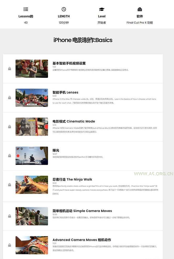 iPhone电影制作人-手机电影拍摄-38节视频课-中英字幕