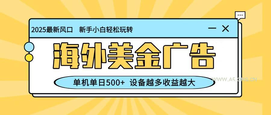 2025-11-01 国外项目 / 技术教程 最新蓝海项目,海外美金广告,单机单日500+,可矩阵放大,设备越多收益越大 by 三五一十八 广告这个东西相信各位同学都不陌生,只要有流量得地方就必定会有广告。但是你每看一次广告 你就是在给广告推广商打工,但是有些平台为了推广自己得app 会把部分广告收入用来反哺到用户 像这一套国内已经非常的成熟了,你如果去撸国内的广告,收益不是变低,就是账户被风控,没有收益,今天给大家带来一套国外的广告平台,原理跟国内的差不多,只不过我们换成了撸美金,而且基本上没有风控,目前项目正直红利期,正是咱们吃肉的好时候