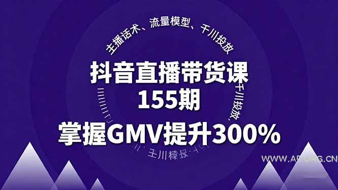 抖音直播带货课155期,主播话术、流量模型、千川投放,掌握GMV提升300%