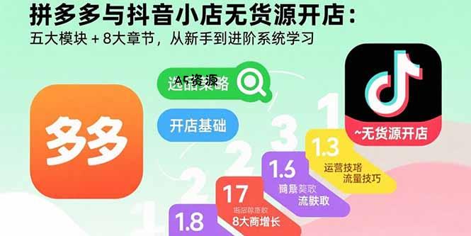拼多多与抖音小店无货源开店:五大模块+8大章节,从新手到进阶系统学习