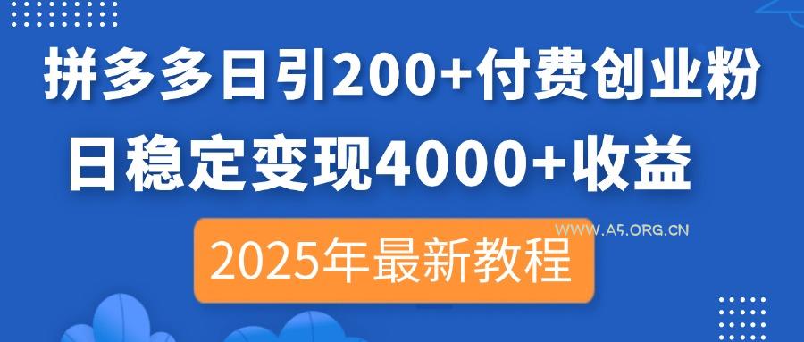 拼多多日引200+付费创业粉,日稳定变现4000+收益,2025年最新教程