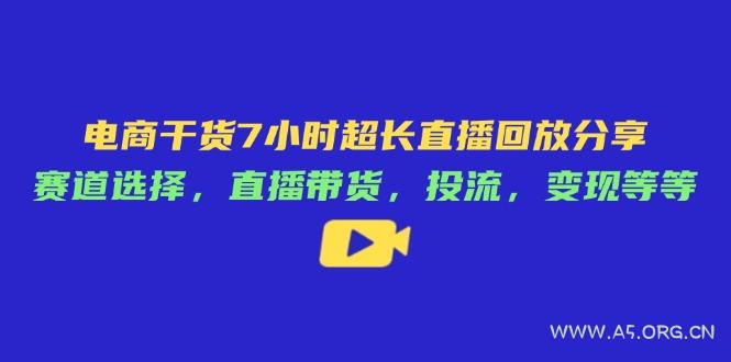 2025-04-16 电商技术 电商干货7小时超长直播回放分享:赛道选择,直播带货,投流,变现等等 by 三五一十八 “电商干货”是一场7小时的电商直播课程,内容涵盖赛道选择、直播带货、投流、变现等核心电商技巧,旨在帮助学员掌握电商运营的关键技能,实现从0到1的突破,开启财富自由之路。