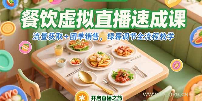 餐饮虚拟直播速成课,流量获取+团单销售,绿幕调节全流程教学