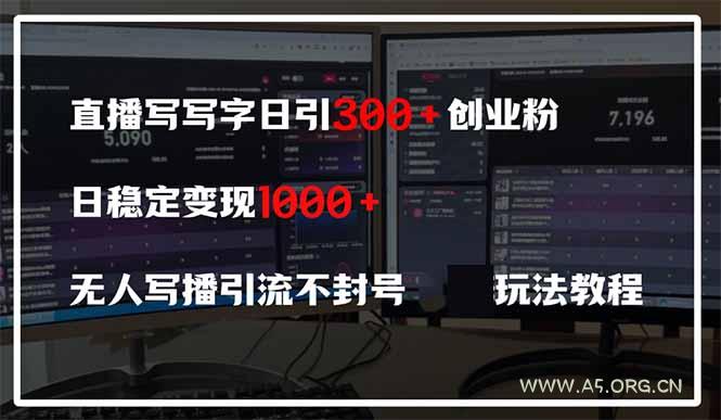 直播写写字日引300+创业粉,日稳定变现600+无人写播引流不封号,玩法教程