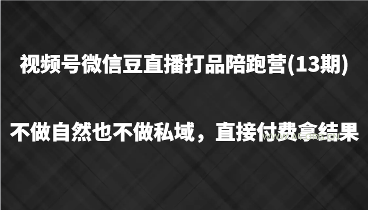 视频号微信豆直播打品陪跑(13期),不做不自然流不做私域,直接付费拿结果