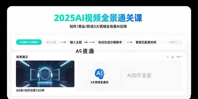 2025AI视频全景通关课:涵盖创作/商业/职场3大领域 掌握AI全场景应用