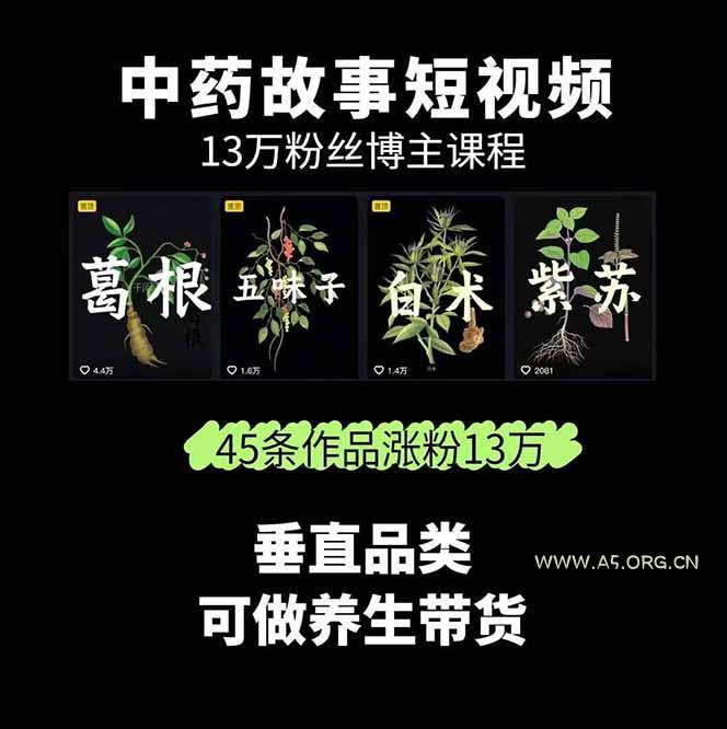 中草药养生赛道:AI文案+故事模板+橱带货,45条作品涨粉13w+单月变现1万+