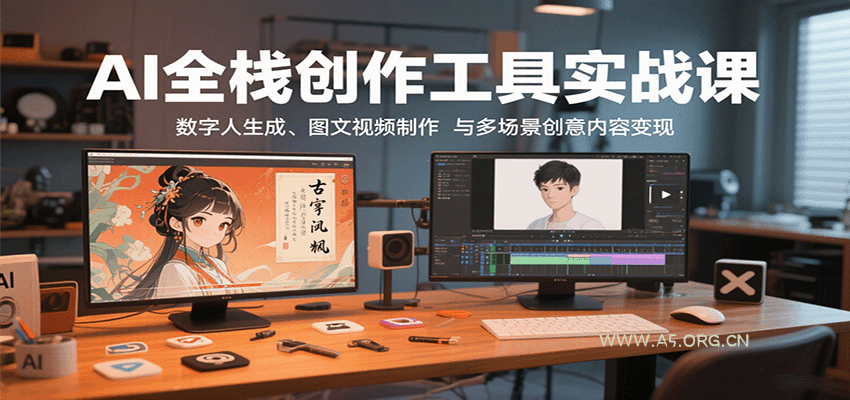 AI全栈创作工具实战课:数字人生成、图文视频制作与多场景创意内容变现