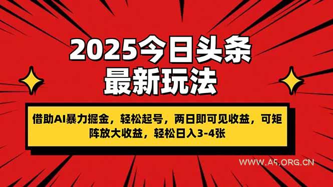 2025今日头条最新玩法,借助AI暴力掘金,轻松起号,两日即可见收益,可…