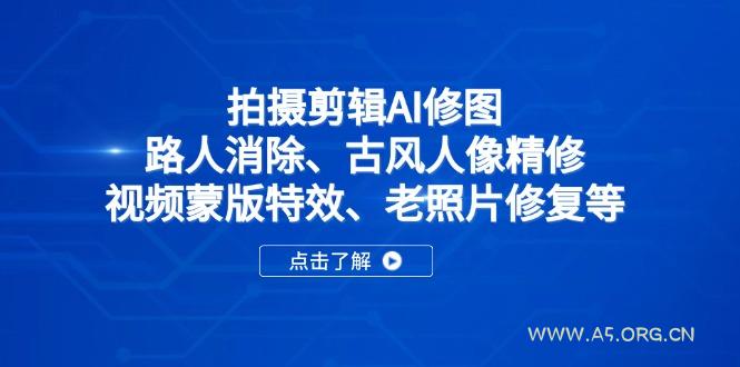 拍摄剪辑AI修图:路人消除、古风人像精修、视频蒙版特效、老照片修复等