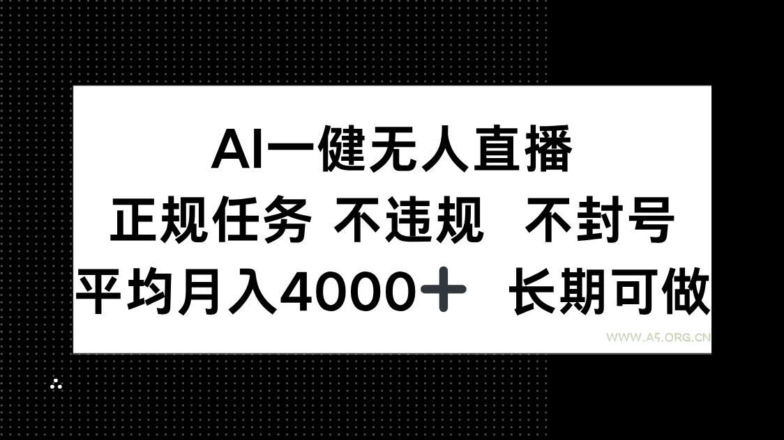 AI一键无人直播,正规任务 不违规 不封号,平均月入4000+ 长期可做