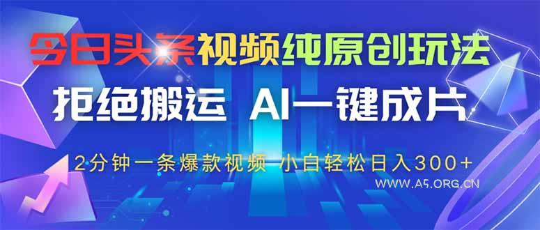 今日头条视频纯原创玩法,AI一键成片,2分钟一条视频,轻松日入300+