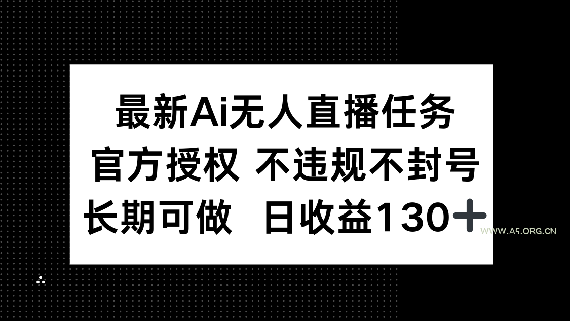 2025-04-28 AI技术 最新AI无人直播任务,官方授权 不违规不封号,长期可做,日收益130+ by 三五一十八 最新AI无人直播任务 长期可做, 官方授权 不违规 不封号 每天平均收益130+,
