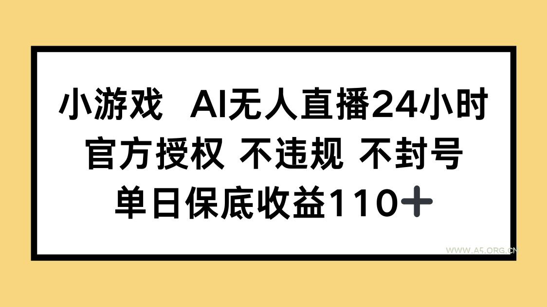 小游戏AI无人直播,官方授权 不违规 不封号,单日保底收益110+