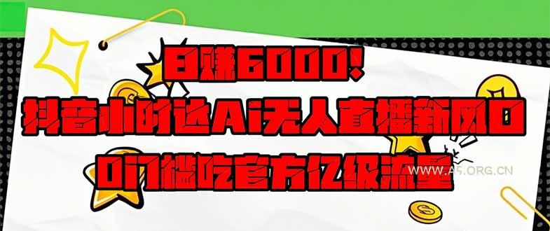 日赚6000+!抖音小时达Ai无人直播躺赚新风口,0门槛吃官方亿级流量!