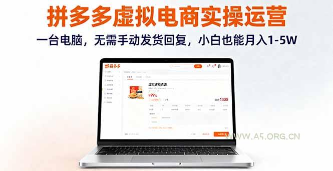 拼多多虚拟电商实操运营,一台电脑,无需手动发货回复,小白也能月入1-5W