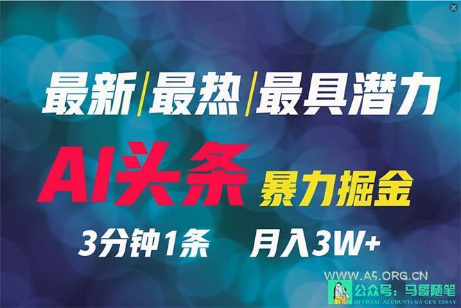 2024-03-11 AI技术 / 创业项目 (9348期)2024年最强副业?AI撸头条3天必起号,一键分发,简单无脑,但基本没人知道 by 三五一十八 绝对新颖,绝对火爆,绝对前景无限——AI头条暴力掘金! 我亲自亲身验证过这个项目,保证百分之百合规。只需稍作努力,你就能在短短3天内看到成果。通过简单的复制粘贴,每月轻松赚取6000+的收入。我坚信,只要你拥有付出努力的意愿,你也能达到同样的成就。 课程大纲: 第一课:项目揭秘 第二课:准备就绪 第三课:实战演练 这三堂课程旨在全面掌握项目理论和实操技巧。无论你是初学者还是老手,都能从中受益匪浅。主要是简单无脑,但基本没人知道。