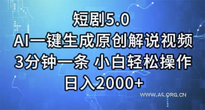 2024-07-07 AI技术 / 创业项目 短剧5.0 AI一键生成原创解说视频 3分钟一条 小白轻松操作 日入2000+ by 三五一十八 短剧火爆的时代,普通人因为不会文案解说而无法参与,今天我们利用AI软件一键生成原创解说视频,直接发布到微信视频号,参与创作者分成计划,赚取播放收益加上平台广告分成收入,真正让普通人实现月入过万,小白轻松操作,3分钟一条,效率超高。