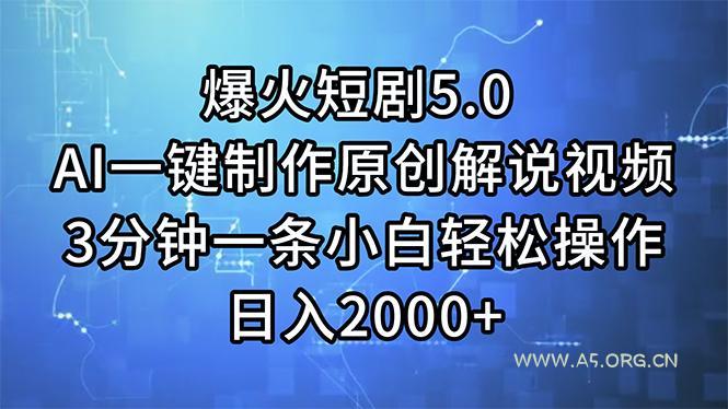 爆火短剧5.0 AI一键制作原创解说视频 3分钟一条小白轻松操作 日入2000+