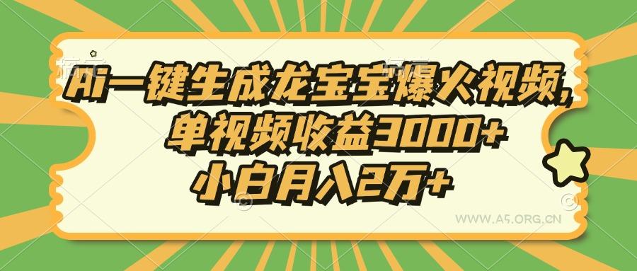 2024-12-26 AI技术 / 创业项目 Ai一键生成龙宝宝爆火视频,单视频收益3000+,小白月入2万+ by 三五一十八 简单来说,就是用AI制作龙宝宝视频,发布到各平台涨粉变现。 这类视频不仅可爱治愈,还给用户带来了奇妙的视觉体验,很受欢迎。 尤其是女性用户,看到孩子可以说是毫无抵抗力,互动也不错。