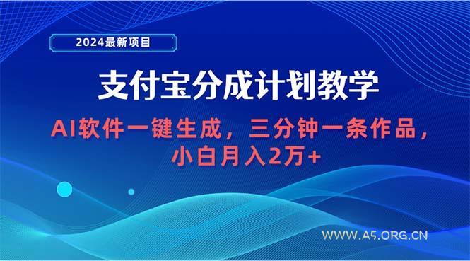 2024-04-09 AI技术 / 创业项目 (9880期)2024最新项目,支付宝分成计划 AI软件一键生成,三分钟一条作品,小白月… by 三五一十八 支付宝分成计划类似于抖音的中视频计划,但目前参与的人还不多,是一个蓝海市场,通过支付宝视频创作中心加入分成计划 在支付宝上发布视频,根据观看量获得收益。现在支付宝分成大约是一万播放100块。可以看一下我这边团队的一个效果反馈。