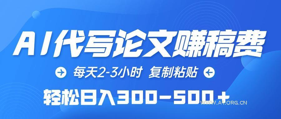 2024-04-18 AI技术 / 创业项目 (10042期)AI代写论文赚稿费,每天2-3小时,复制粘贴,轻松日入300-500+ by 三五一十八 本项目适合没特长,没资金的兄弟们快速搞到钱!简而言之就是门槛低,没成本来钱快的副业。 只需要利用AI工具代写论文来赚取稿费,没有技术门槛,只要你会用电脑就能赚钱 只要你肯花时间,这个项目的收益绝对比大多是打工族工资高的多! 并且无需引流,只需每天接单即可,一天搞个300-500块真的不要太简单!