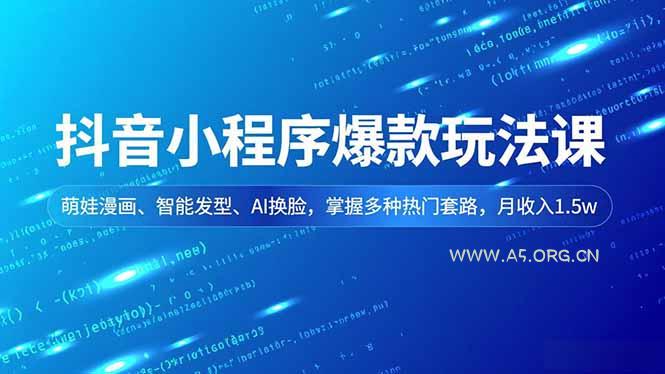 抖音小程序爆款玩法课,萌娃漫画、智能发型、AI换脸,掌握多种热门套路,月收入1.5w