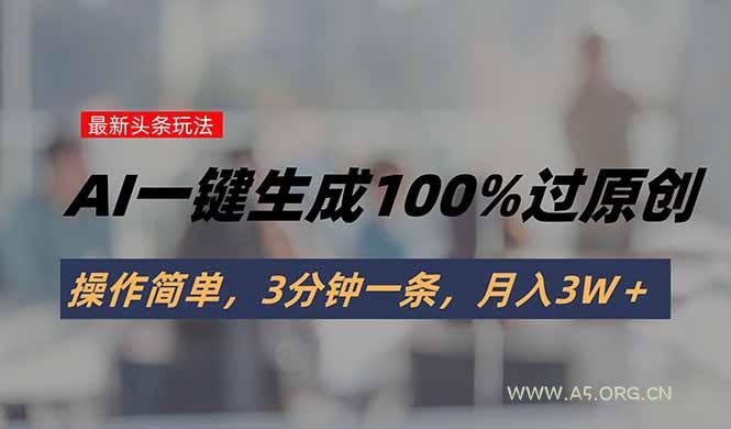 头条最新玩法,AI一键生成100%过原创,操作简单,3分钟一条,月入3W+