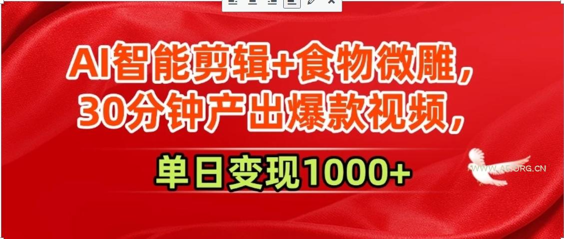 AI智能剪辑+食物微雕,30分钟产出爆款视频,单日变现1000+