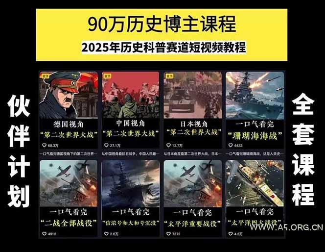 历史短视频赛道变现课,百集素材库应用,文案剪辑技巧,账号运营全案