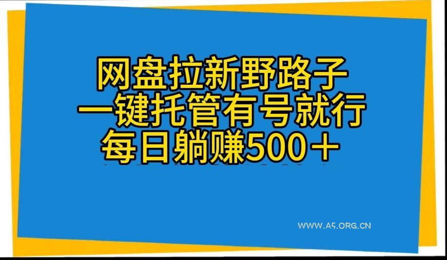 网盘拉新野路子,一键托管有号就行,全自动代发视频,每日躺赚2000+,保姆级落地教程