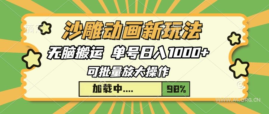 2024-12-24 网络技术 / 网赚项目 / 自媒体 / 营销思路 沙雕动画新玩法,无脑搬运,操作简单,三天快速起号,单号日入1000+ by 三五一十八 沙雕动画一直都是很火的一个领域,而且现在它内容更新奇,直接把短剧内容搬过来,做成沙雕动画,播放量还挺高,如果是以前的话,这种动画制作起来真的很费事,制作一个视频得花1天时间,还不一定够,现在我们直接借助工具生成就好了。简单无脑,100%过原创,而且可以批量放大去操作!