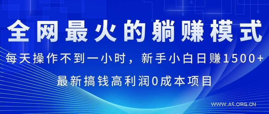 全网最火的躺赚模式,每天操作不到一小时,新手小白日赚1500+,最新搞钱高利润0成本项目